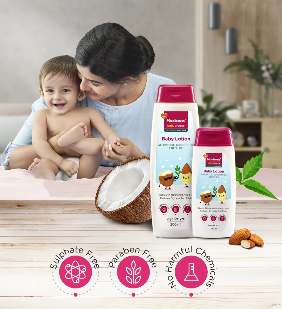Let your baby’s skin stay healthy with our Baby Lotion, which comes with the goodness of Almond Oil, Neem Oil and Coconut Oil.
