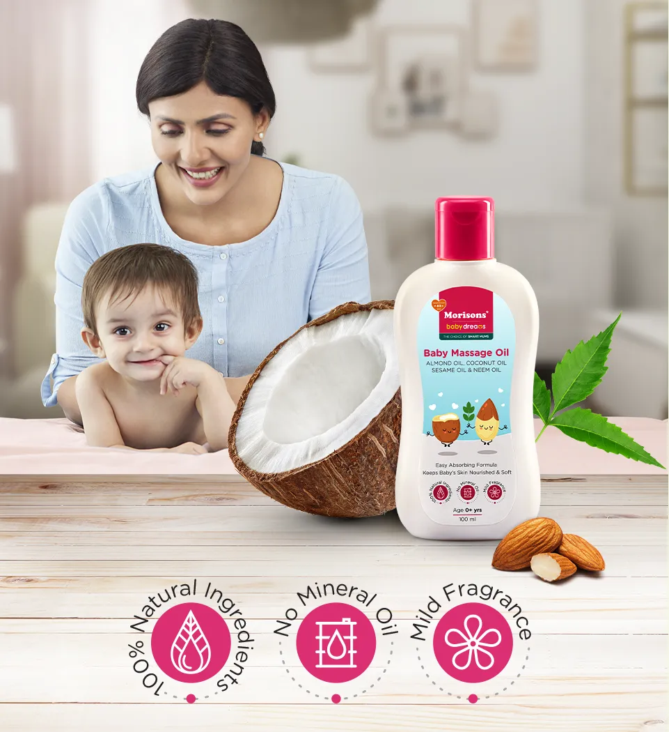 It takes the right massage oil to help your baby grow strong! Our Baby Lotion comes with the goodness of Almond Oil, Neem Oil, Coconut Oil and Sesame Oil.